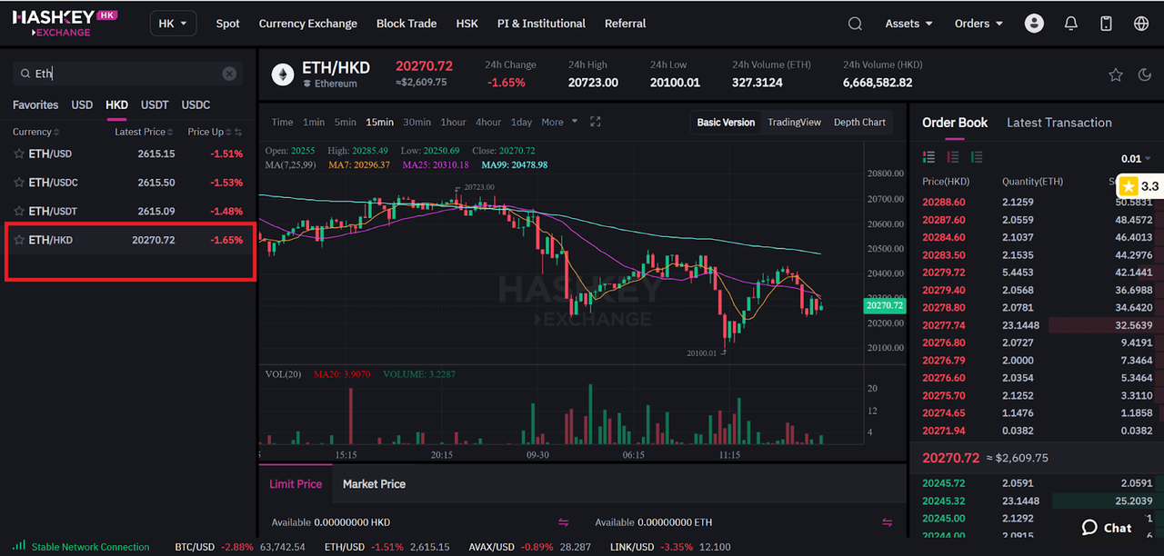 Funds can be deposited once the account is verified. HashKey Exchange allows you to deposit either Hong Kong dollars (HKD) or cryptocurrencies. If you plan to buy Ethereum, depositing HKD is often the most straightforward route.