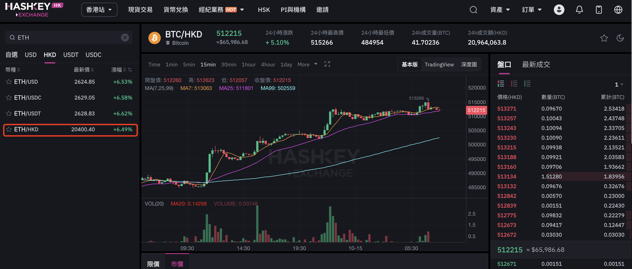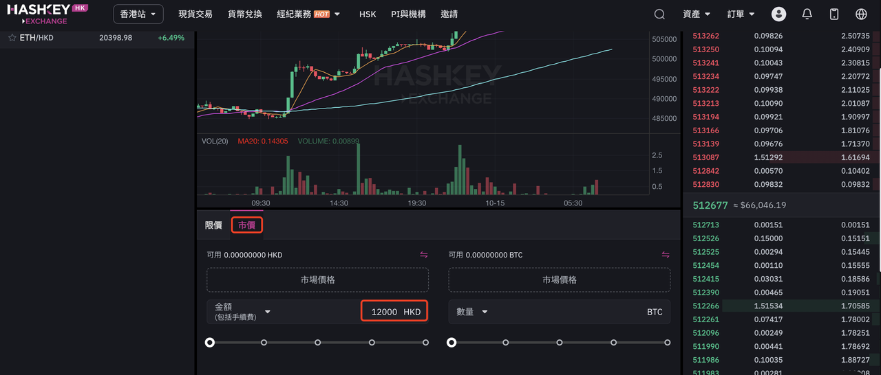 將資金存入 HashKey Exchange 錢包後,現在就可以找到以太坊市場並進行購買了。方法如下: