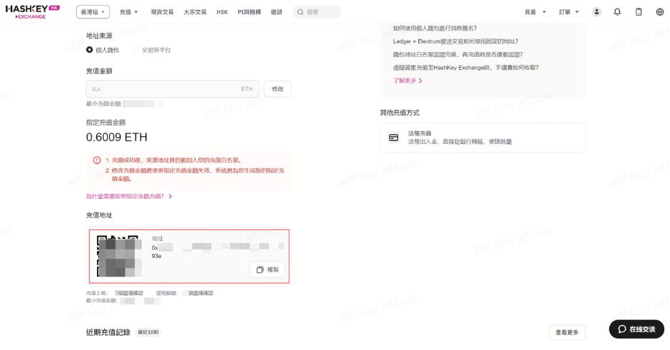 若選擇“新地址儲值”作爲儲值方式,需通過“指定儲值金額”將個人地址加入儲值白名單,